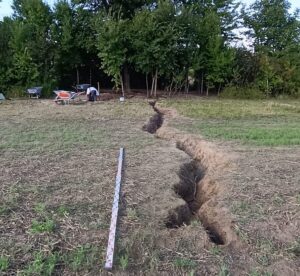 Die freigelegten Wurzeln einer ca. 13 m hohen Feldulme werden besichtigt. DI Peter Libowitzky gibt Einblick in die Arbeiten mit dem Georadar.